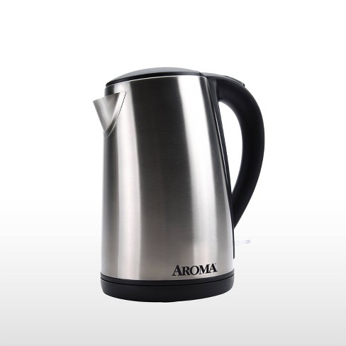 Aroma hot h20 x press 1 5 liter 6 cup cordless electric water kettle stainless steel boils fast the hot h20 x press from aroma provides boiling water in a matter of minutes.